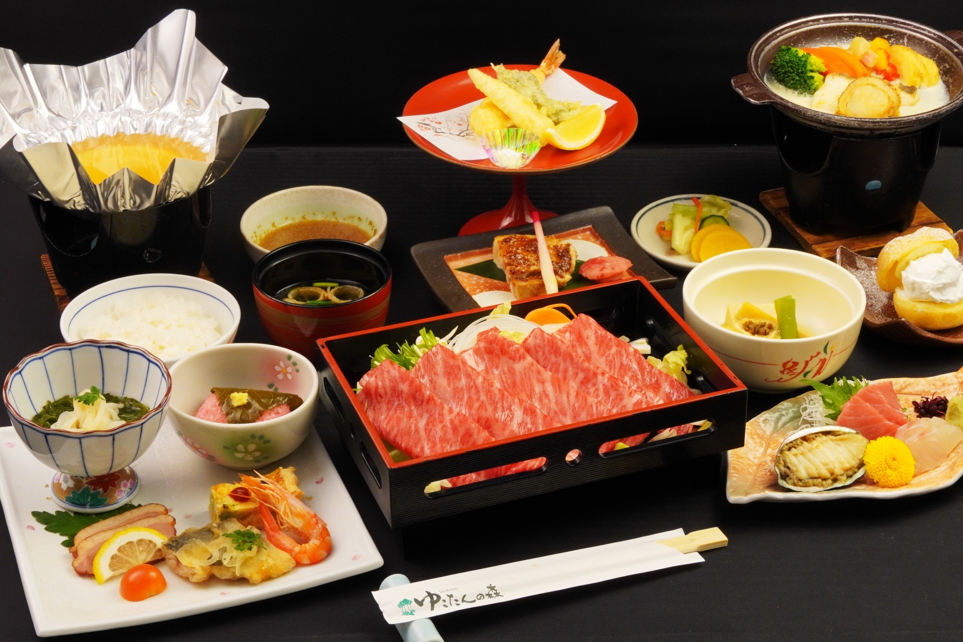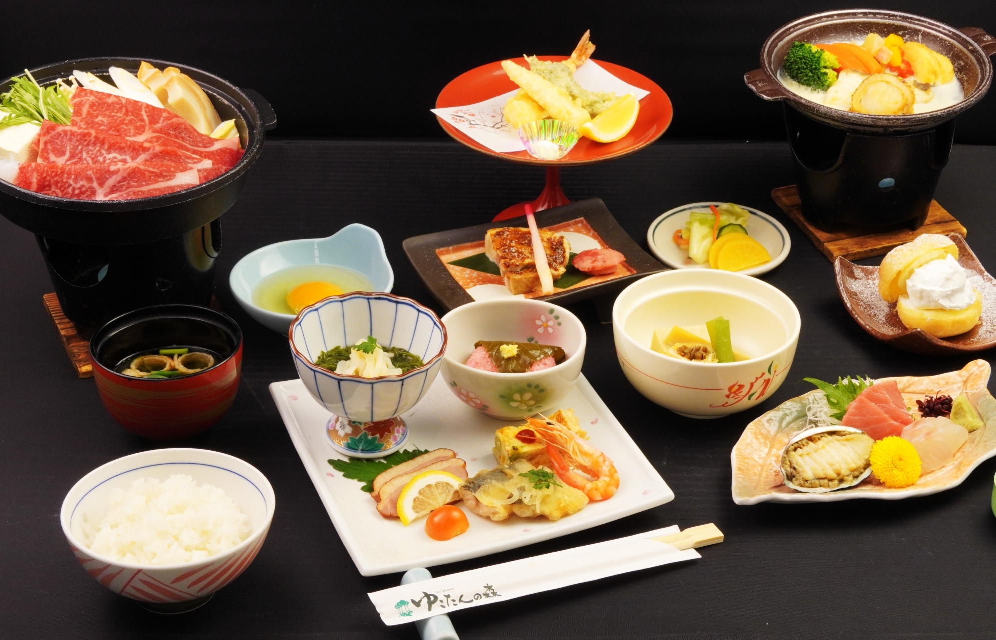 <おすすめ・岩手県産牛のすき焼き、季節の旬の味覚>