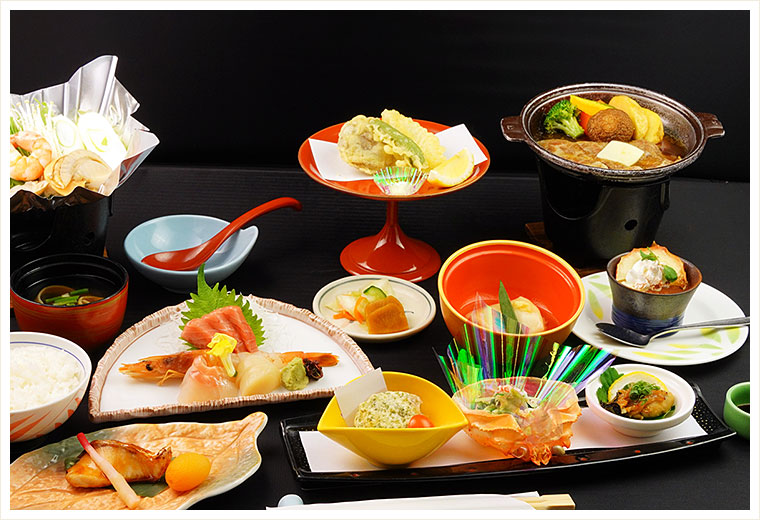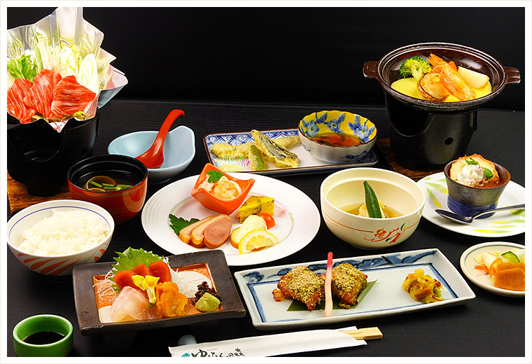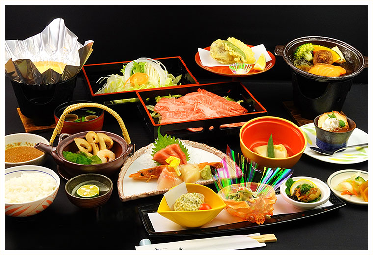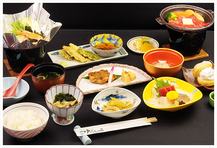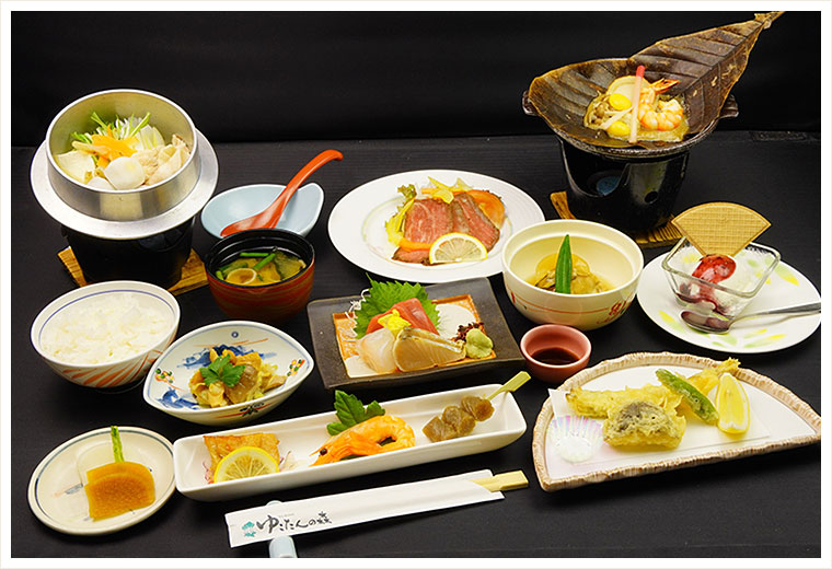 旬と地の素材を活かした、月替わりの料理コースです。大自然に抱かれた当館で、旬の味覚をごゆっくりとお楽しみください。