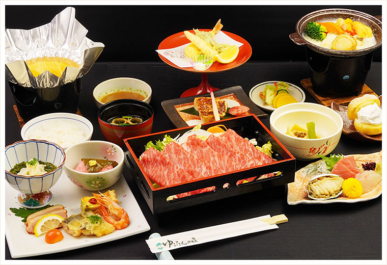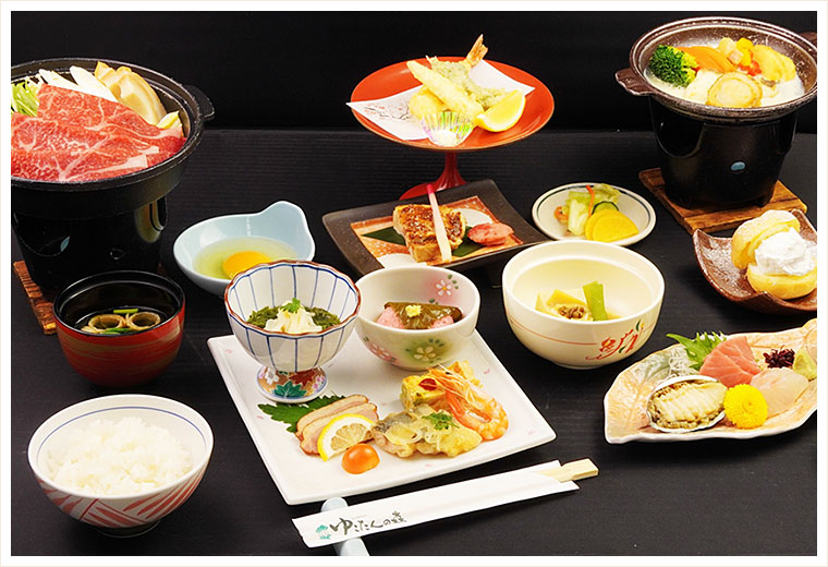 旬と地の素材を活かした、月替わりの料理コースです。大自然に抱かれた当館で、旬の味覚をごゆっくりとお楽しみください。